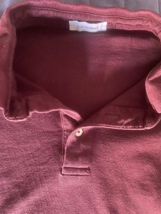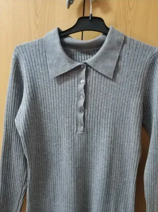 Jersey de punto fino con cuello polo y manga larga. - Diseño acanalado. - Abertura en pico en el cuello. - Tiene una mancha, pero no se ve mucho