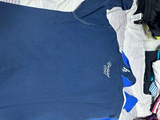 Camiseta de manga larga con cuello tipo polo y un diseño moderno. Su tacto es suave como la licra pero no lo es ni tampoco es eléctico como la licra. Idéntico a una camiseta de fútbol. Totalmente nuevo, sin usar por error en el tallaje. Correcta para usar por dentro del pantalón. 2XL Longitud 73 Hombro 48 Diámetro de pecho 112