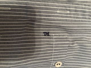 Camisa de manga larga con un diseño de rayas finas. - Cuello blanco. - Bolsillo en el pecho.