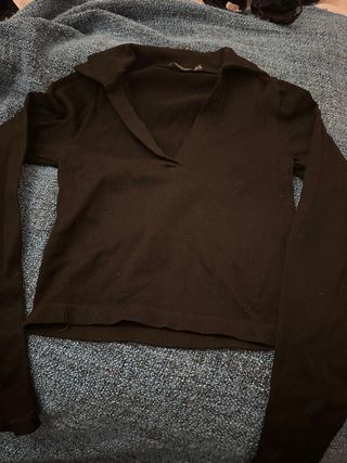 Polo de manga larga con cuello. - Tejido acanalado. - Cuello tipo polo con abertura en V.