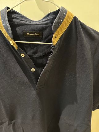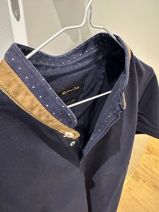 Polo de manga corta de la marca Massimo Dutti. Impecable, poco uso, vendo por quedar pequeño. - Cuello mao con detalle de ribete azul. - Cierre de dos botones. - Tejido de punto fino.