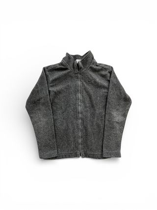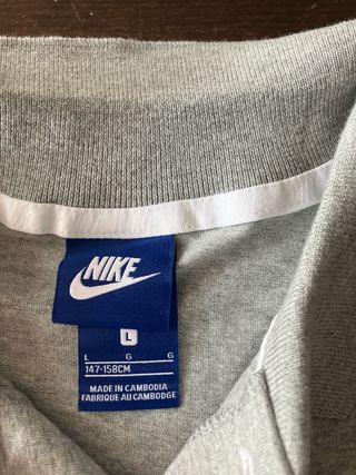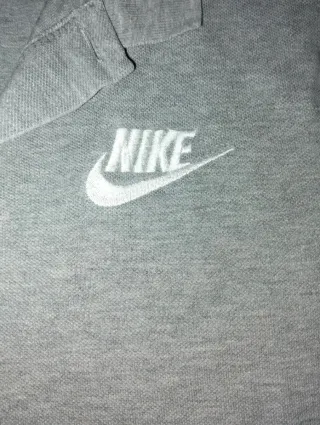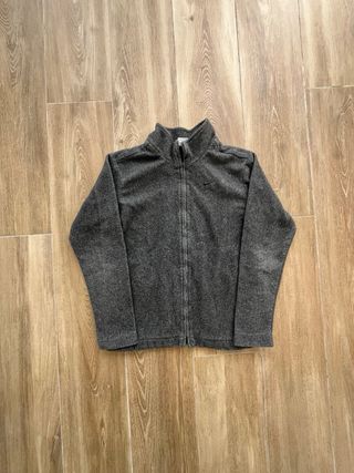 Polar Nike de color gris. Cierre completo con cremallera pero le falta una parte de la cremallera. - Cuello alto. - Logo de Nike bordado en el pecho.