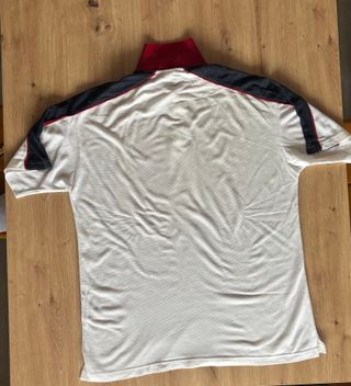 Camiseta deportiva de manga corta. - Cuello tipo polo con botones. - Logo de la marca en el pecho. - Ribetes blancos en mangas y cuello.