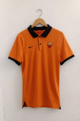 Polo oficial del AS Roma. - Diseño clásico con cuello y puños en contraste. - Escudo del equipo bordado en el pecho. - Logo de Nike visible.