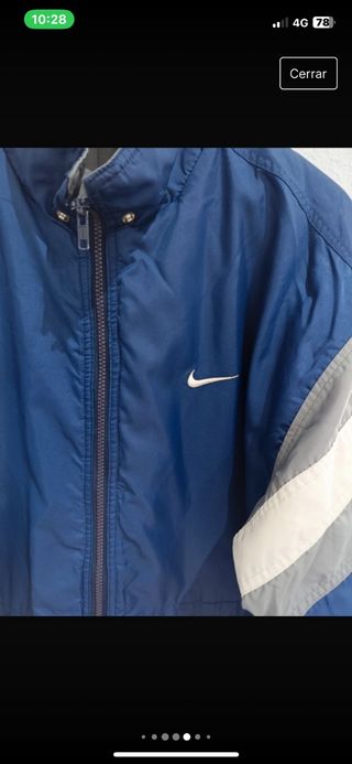 Chaqueta deportiva de la marca Nike. - Diseño en bloques de color azul. - Cierre de cremallera. - Bolsillos frontales,con polar dentro tiene muchos años pero está cuidada ,tiene manchas de pinta uñas dejo foto