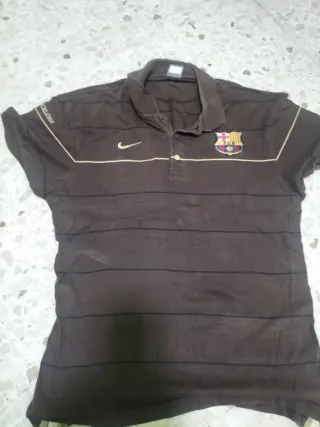 Polo oficial de paseo del F.C. Barcelona. - Diseño a rayas finas. - Escudo del club bordado. - Logo de Nike. - Detalle de BARCELONA en la manga.