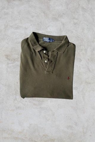 Polo clásico de manga corta en color verde oliva. Presenta un diseño atemporal con cuello y tapeta de botones. Envío en menos de 24h 💨 Cualquier duda contacta ✅ - Logo bordado en el pecho. - Cuello acanalado. - Tapeta de dos botones. -pequeño agujero en la parte inferior -precio ligeramente negociable