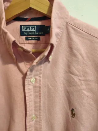 Camisa de color rosa de Polo Ralph Lauren en talla S de hombre. Se encuentra nueva, sin uso. Camisa para vestir. Dimensiones entre hombros 44 cm, dimensiones entre axilas 47 cm y largo de manga 63 cm.