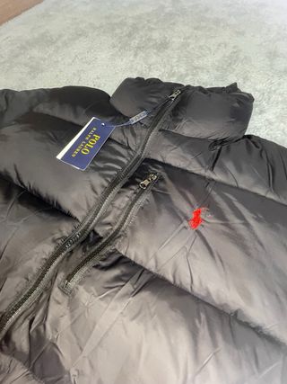 Chaqueta Polo Ralph Lauren tipo puffer / acolchada, en color negro, talla L, nueva con etiquetas. Diseño limpio y elegante con un ajuste cómodo que aporta abrigo sin exceso de volumen. Ideal para quienes buscan una prenda versátil, válida tanto para un look casual premium como para un estilo más urbano o diario. Incluye: • Cierre frontal con cremallera • Bolsillos laterales con cremallera • Bolsillo vertical en el pecho • Cuello alto para mayor protección • Logo bordado en el pecho Una chaqueta práctica, ligera y muy fácil de combinar para otoño e invierno. 📏 Talla: L 🆕 Estado: nueva, sin uso 📦 Envío: rápido y bien protegido 💬