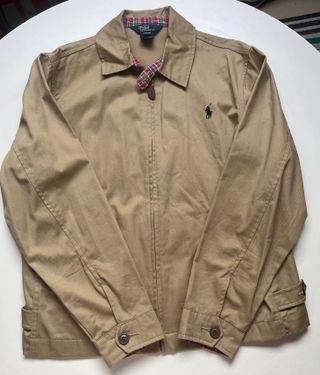 Chaqueta corta de la marca Polo Ralph Lauren. - Color beige. - Diseño clásico con cuello. - Logo de la marca bordado en el pecho. PRECIO NO NEGOCIABLE