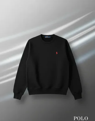 Sudadera clásica de Polo Ralph Lauren en color negro. Presenta el icónico logo del jugador de polo bordado en rojo en el pecho. - Cuello redondo. - Puños y bajo elásticos.