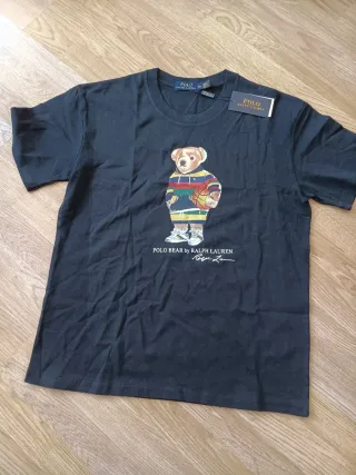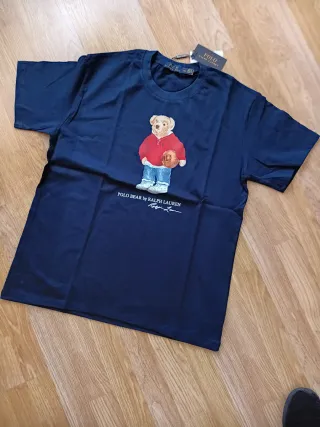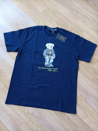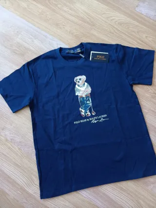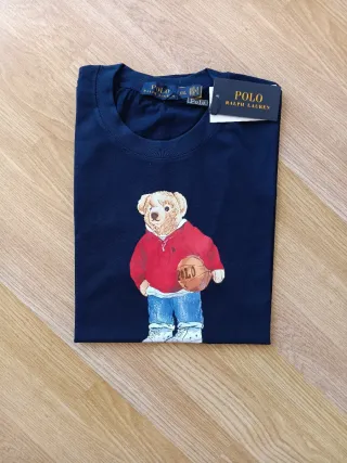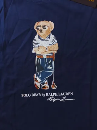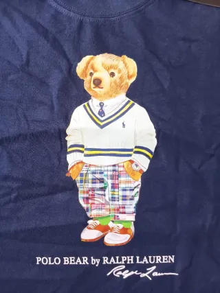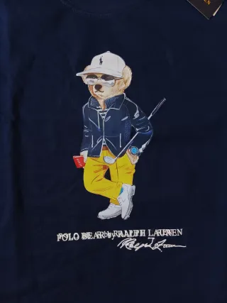 Camiseta azul marino de Polo Ralph Lauren con el icónico oso. - Diseño del Polo Bear. - Estampado frontal. - Etiqueta original,algodon 100%