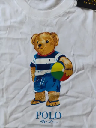 Camiseta de Polo Ralph Lauren con estampado de oso. Algodon 100% ancho 51 largo 69 - Diseño gráfico del oso. - Manga corta. - Cuello redondo.