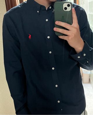 Camisa de manga larga con el icónico logo del jinete bordado en contraste. - Cuello con botones. - Puños abotonados. - Corte clásico.