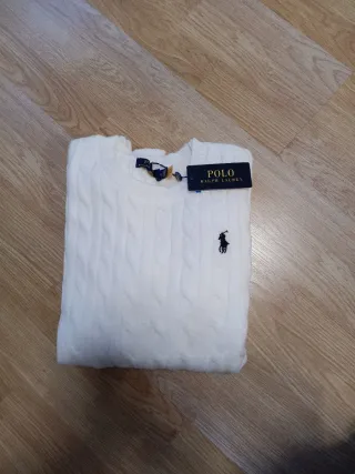 Jersey de punto trenzado en color blanco de Polo Ralph Lauren. Un clásico atemporal para cualquier guardarropa. - Diseño de punto trenzado. - Cuello redondo. - Manga larga. Lo vendo por que me he equivocado de talla esta nuevo