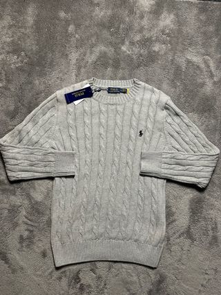 Jersey Polo Ralph Lauren Cable Knit Gris Talla M