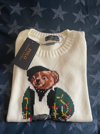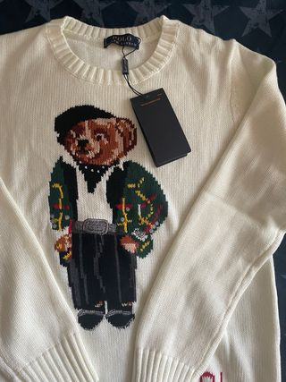 Jersey de punto con un diseño de oso icónico de Polo Ralph Lauren. Perfecto para añadir un toque distintivo a tu armario. - Diseño de oso con detalles. - Tejido de punto cómodo. - Lo vendo porque no me vale, talla como una S