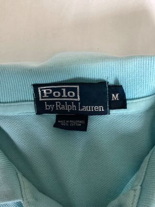 Polo de manga corta para hombre de la marca Ralph Lauren. En muy buen estado. Lo he comprado así de segunda mano y no me lo he puesto porque me esta grande. Es una talla M bastante amplia, es mas bien una L. Corte clásico. - Color azul claro. - Logo del jugador de polo bordado en naranja en el pecho. - Cuello clásico. - Cierre de dos botones. - Dobladillo con doble costura.