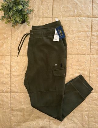Pantalones tipo jogger de Polo Ralph Lauren. - Color verde oliva. - Talla XL. - Diseño con bolsillos cargo.