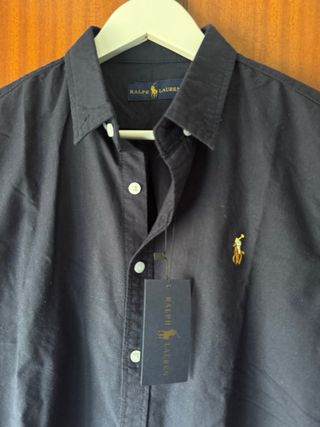 Camisa de manga larga para hombre de Polo Ralph Lauren. -Talla XL - Color azul marino. - Logo bordado en el pecho. - Cierre de botones. - Cuello clásico.