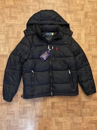 Abrigo acolchado de Polo Ralph Lauren en color negro si etiquetas. Cuenta con capucha y cierre de cremallera. - Diseño acolchado. - Capucha integrada. - Bolsillos laterales con cremallera. Es talla L pero talla mas pequeño de lo normal