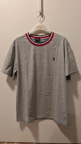 Camiseta polo ralph lauren de hombre en color gris con ribete de cuello en rojo, blanco, y azul marino. Talla: M Largura 70cm Ancho hombro 51 cm Sin estrenar, de buena calidad.