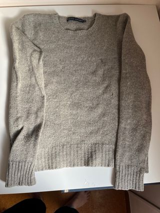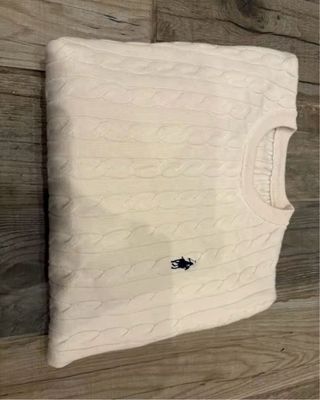 Jersey de ochos beige de Ralph Lauren. Talla XL, aunque queda ideal si te gusta el estilo oversized (yo uso una S). De punto 100% algodón, con cuello redondo. Está nuevo sin etiquetas, solo usado una vez. Precio original: 200 €.