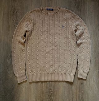 Jersey de punto trenz ado de Ralph Lauren en color beige original. Un clásico atemporal para cualquier guardarropa. - Diseño de punto trenzado. - Cuello redondo. - Logo de caballo bordado en el pecho color azul marino