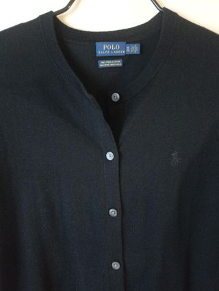 Elegante Cárdigan de POLO RALPH LAUREN, en color negro. Cuello redondo, logo de la marca bordado en el pecho. Rematado con canalé elástico en puños y bajo. Es una prenda clásica y atemporal, perfecta para llevar encima de una camisa o camiseta. Muy poco uso Composición: 100% algodon Medidas: Largo 60 cm; Ancho espalda (hombros) 43 cm; Ancho espalda (sisa) 57 cm; Largo de manga 68 cm Talla XL Precio 35€ LAS FOTOS FORMAN PARTE DE LA DESCRIPCIÓN Puedes ampliar las imágenes o contactarme si tienes alguna pregunta; con gusto la responderé. Empaquetado cuidadoso y envío rápido. Tu pedido se preparará con el máximo cuidado
