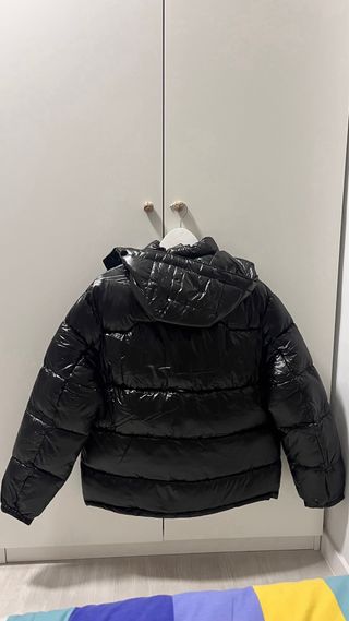 Chaqueta acolchada con acabado brillante. - Capucha integrada. - Cierre de cremallera frontal. - Bolsillos laterales con cremallera.