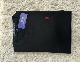 Jersey clásico de Polo Ralph Lauren en color negro. Presenta el icónico logo del jinete bordado en rojo en el pecho. -Talla M - Cuello redondo. - Puños y bajo elásticos. -Logo de color rojo -Envios rapidos ✅