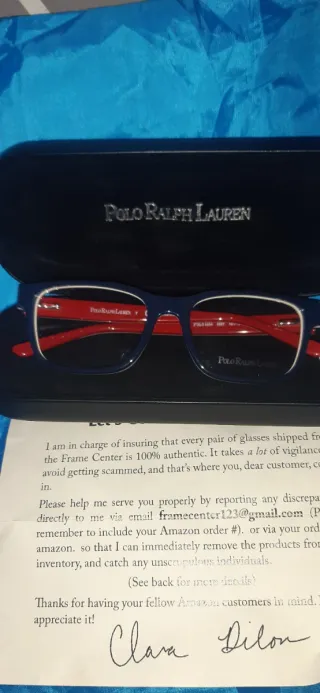 Monturas de gafas de la marca Polo Ralph Lauren en color azul. Diseño moderno y elegante. - Montura de pasta. - Patillas rojas. - Incluye estuche.