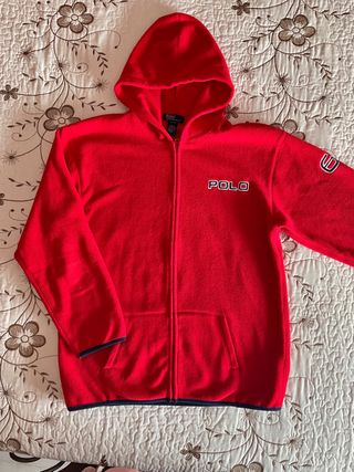 Sudadera polar roja con cremallera de Ralph Lauren. Talla 20(CL) de niño que equivale a S o M de mujer