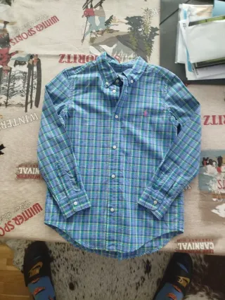 Camisa de manga larga de la marca Polo Ralph Lauren. - Cuello clásico. - Cierre de botones. - Logo bordado en el pecho. La talla es una 18 de niño, equivalente aproximadamente a una S de adulto.