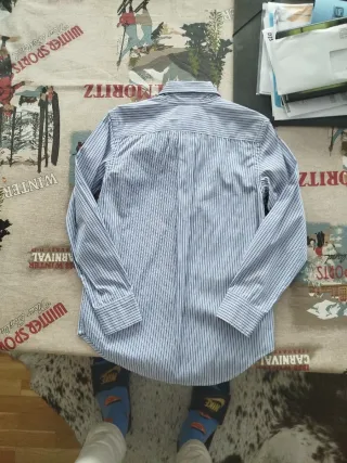 Camisa de manga larga con un diseño de rayas finas en tonos azules y blancos. Presenta el icónico logo del jinete bordado en el pecho. Es una talla 16 de niño de las antiguas por eso pongo q es XS ES Q no le da la opción de poner así en las tallas - Cuello clásico. - Cierre de botones. - Puños abotonados.