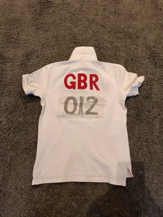 Polo de manga corta con detalles en verde. Talla 14/16 de niño o S adulto para persona delgada. - Cuello tipo polo. - Logo de la marca bordado en el pecho. - Número 3 en la manga izquierda.