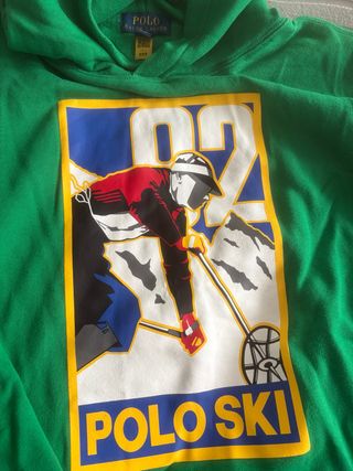 Sudadera con capucha de Polo Ralph Lauren con un diseño gráfico de esquí. -TALLA XL NIÑO EQUIVALE A UNA S DE HOMBRE. - Diseño frontal con esquiador y montañas. - Detalle de texto POLO SKI en la parte inferior. - Capucha con cordones.