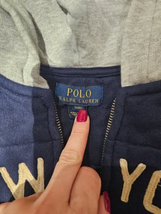 Sudadera con capucha de Polo Ralph Lauren para niño. Es una L de niño y talla como una XS. - Logo del caballo bordado en blanco en el pecho. - Cordones ajustables en la capucha. - Bolsillo tipo canguro.
