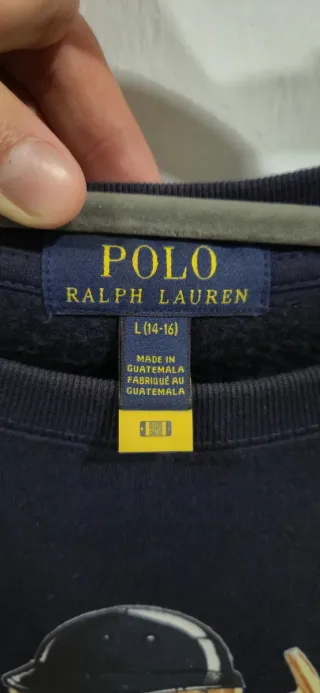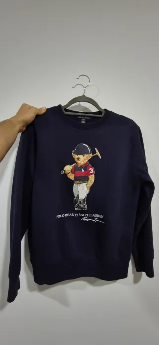 Sudadera azul con el icónico Polo Bear de Ralph Lauren en talla XL de NIÑO, equivale a una XS de ADULTO (precio original 120€). - Diseño del Polo Bear. - Cuello redondo.