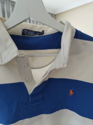Jersey de manga larga estilo rugby de Polo Ralph Lauren. Talla XL niño imagino pero es una S-M de chico. Ancho: 52 cm largo parte delantera 58,5 cm largo parte trasera 62 cm manga desde cuello 64 cm