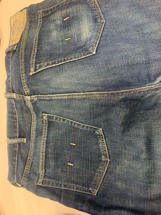 Jeans Polo Ralph Lauren de color azul marino. Son unos pantalones vaqueros usados, con un estilo clásico y desgastado que les da un toque vintage. - Corte recto. - Talla grande. w38L34 - Bolsillos delanteros y traseros.