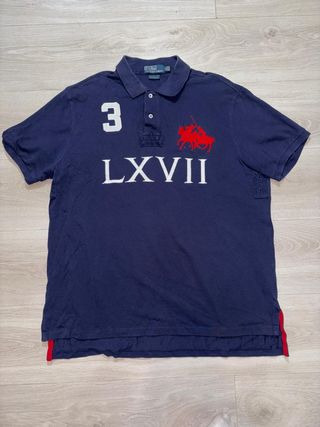 Polo Ralph Lauren de hombre, vintage y estilo Y2K. Es de color azul marino y luce en excelentes condiciones. - Talla: XL - Número: LXVII (67 en números romanos) - Diseño: Con el número "3" y un logo bordado.