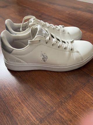 Zapatillas Polo Mujer Blancas y Plateadas