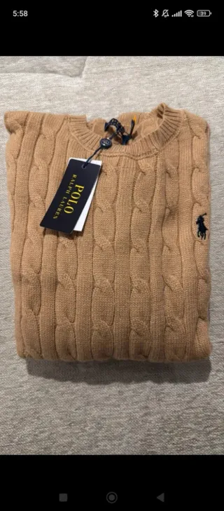 Jersey de punto trenzado de Polo Ralph Lauren. Talla M - Diseño clásico con cuello redondo. - Logo del jinete bordado en el pecho. - Tejido suave y confortable.