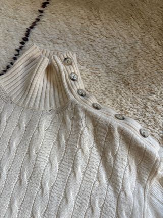 Jersey de punto grueso con trenzas y cuello alto. Presenta botones decorativos en el hombro. Lana y cachemir - Diseño de trenzas. - Cuello alto acanalado. - Cierre de botones en el hombro.