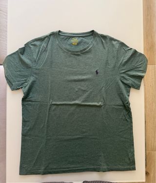 Camiseta de manga corta de la marca Polo Ralph Lauren en color verde. Presenta el icónico logo del caballo bordado en el pecho. - Cuello redondo. - Tejido suave y cómodo. - En perfectas condiciones. - Se hacen envíos.