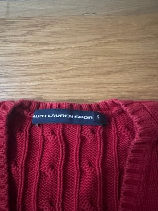 Jersey de punto trenzado de Polo Ralph Lauren. - Diseño clásico con cuello redondo. - Logo del jugador de polo bordado en rojo en el pecho. - Puños y bajo acanalados. -Calidad: 10/10 -Envío en menos de 48h -Largo: 61cm. Hombros: 40cm. Ancho:45cm. Cintura 39cm. Mangas: 61cm. Ancho de mangas: 15cm. Ancho de mangas muñeca: 10cm