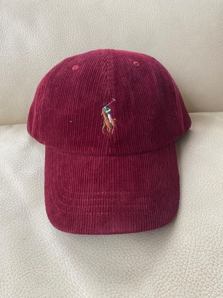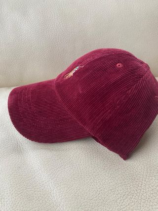 Gorra de pana en color burdeos con el icónico logo del jinete y caballo bordado. - Material: Pana. - Color: Burdeos. - Diseño: Logo bordado.