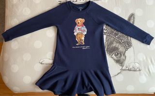 Vestido de manga larga para niña con un divertido estampado de Polo Bear. - Diseño con el icónico Polo Bear de Ralph Lauren. - Falda con vuelo. - Cuello redondo.