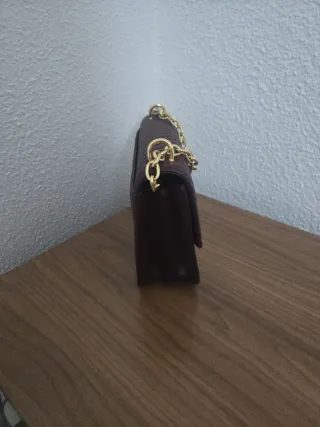 Elegante bolso de mano con cadena dorada. - Diseño acolchado con patrón de espiga. - Logo metálico RL en la parte frontal.